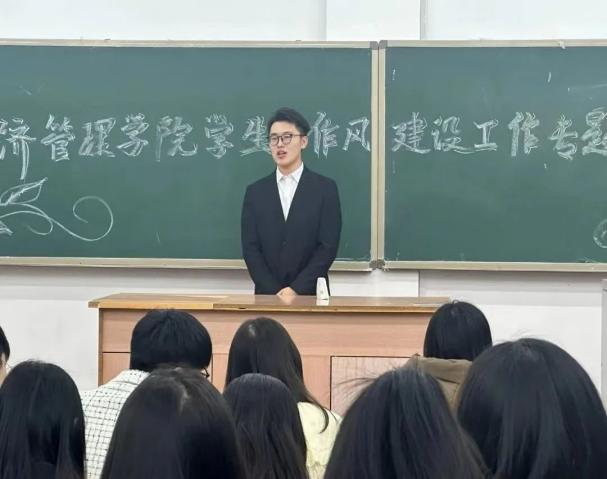 3月8日下午,经济管理学院于阶梯教室九阶召开学院学生会作风建设工作专题会。学院分团委书记、2020级辅导员李智超针对经济管理学院学生组织2020级、2021级同学期望同学们将学习成果体现在全心全意为同学服务上,告诫全体在场学生要以身作则起好带头作用,从恪守学生本分、牢记服务宗旨、勤勉务实做事、营造温暖氛围和永远心怀感恩五个方面为在场的同学指明方向。通过这次会议,有利于提升学生组织工作素质,更好的为同学们服务。