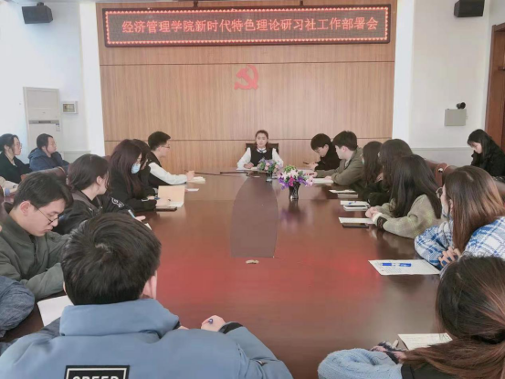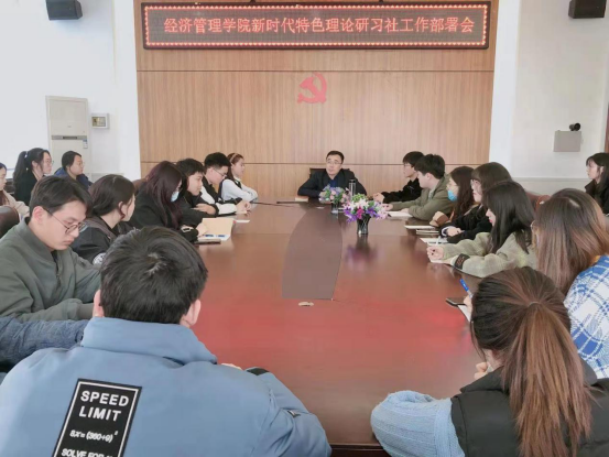 为加强研习社成员的理论学习,提高同学们的工作能力,3月19日在社科楼501室经济管理学院召开了新时代特色理论研习社工作部署会。本次会议由党委副书记武杨,学生工作办公室冷雪冰老师、刘佳峰老师主持召开,全体研习社干部成员参加。
