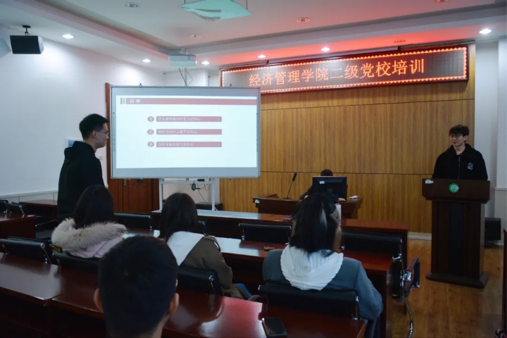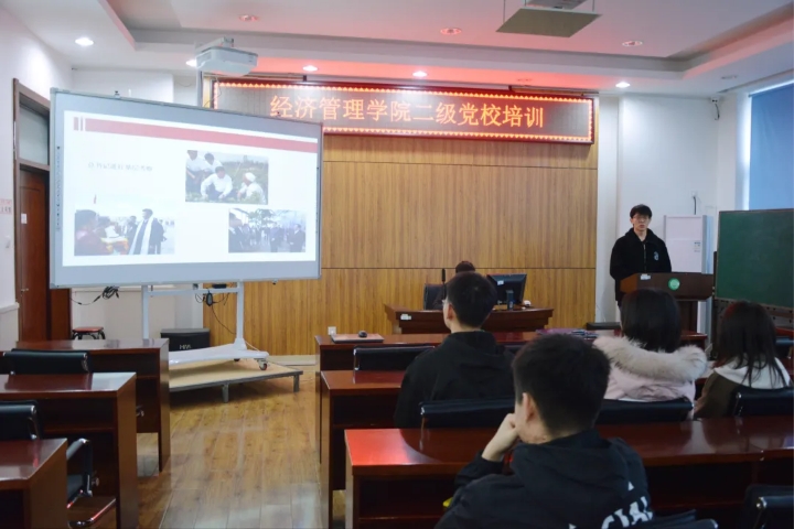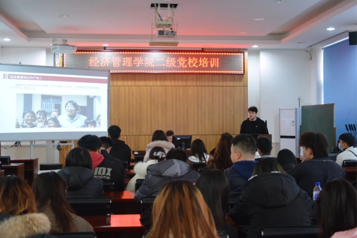 为深入学习贯彻习近平新时代中国特色社会主义思想和党的十九大精神,进一步加强和改进大学生思想政治教育工作,大力推进党的思想政治理论建设,结合学院实际,经济管理学院于3月21日深入开展“青春向党,百年征程”党建主题系列活动之“中国共产党为什么能”二级党校培训。