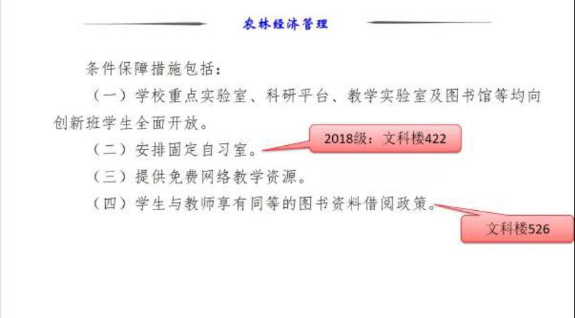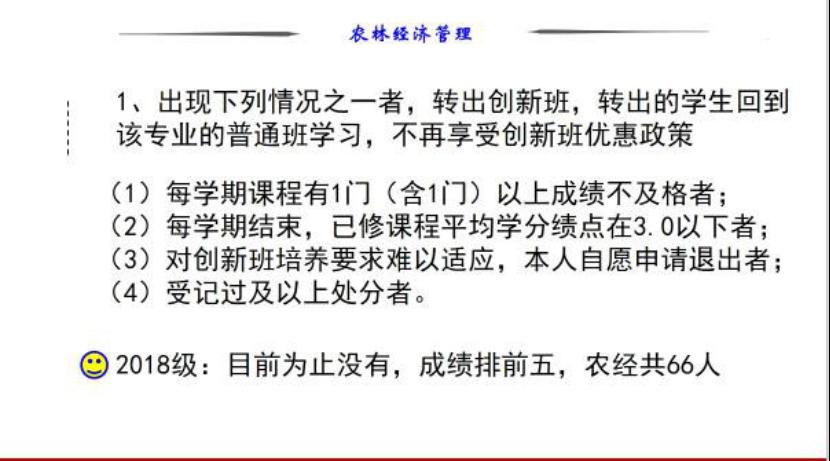 最后,赵院长耐心地讲解了“农林经济管理创新班”选拔方式和流动机制,并解决同学们的相关问题。