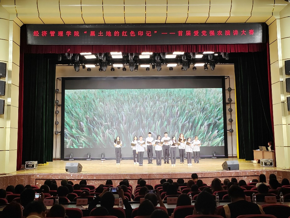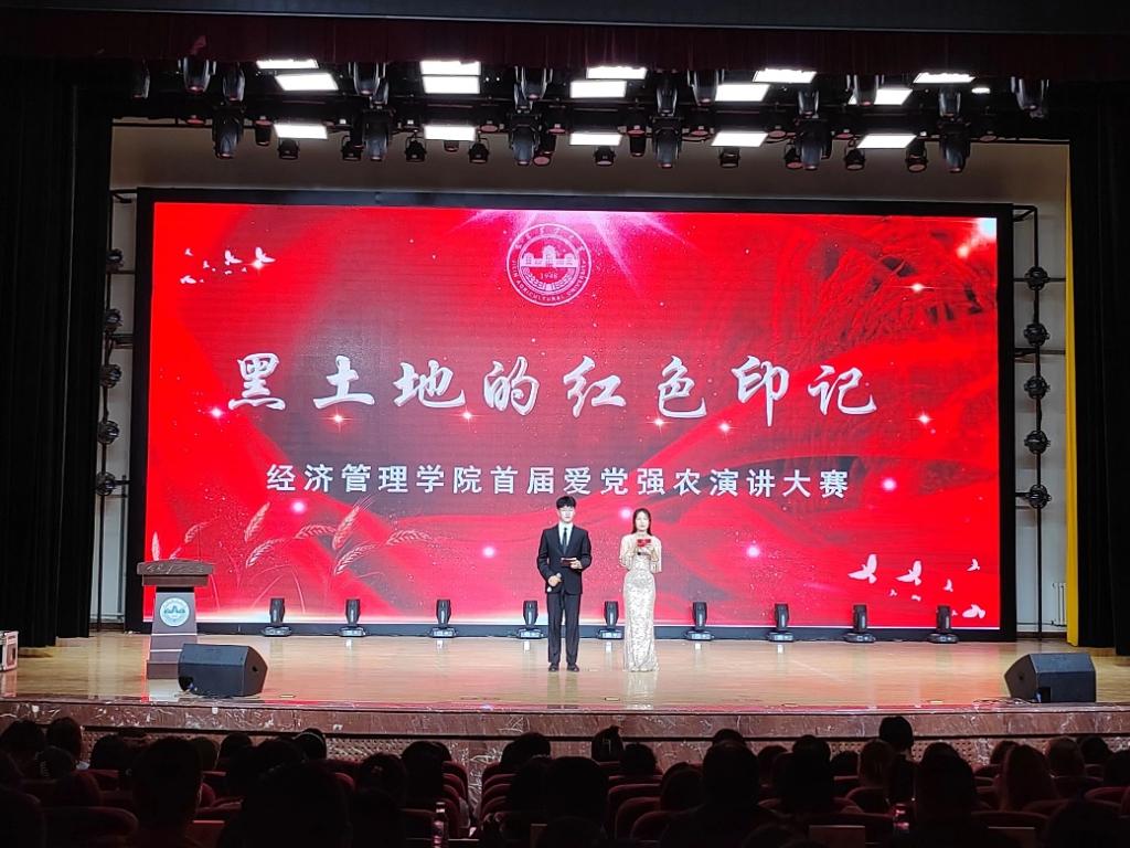 在习近平新时代中国特色社会主义思想的指导下,为全面贯彻落实党的二十大精神、新发展理念,深刻理解习近平总书记关于黑土地保护的重要指示精神,准确把握“强国必先强农,农强方能国强”目标导向。5月29日,由学院文旅协会承办的“黑土地的红色印记”首届爱党强农演讲大赛决赛在鲲鹏学生文化活动中心举办。