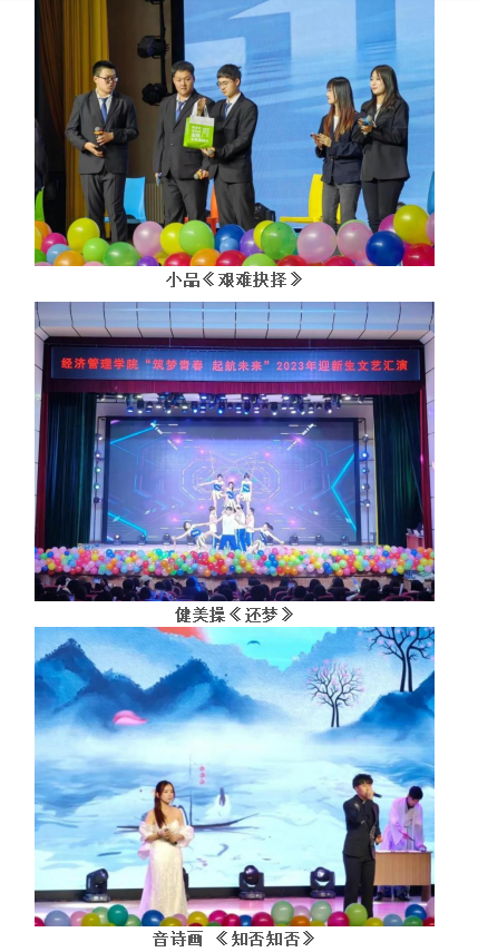 晚会提取“踏歌远航·扬新帆”、“青春岁月·展风华”、“星辰大海·共少年”三个关键词,以音诗画、歌曲、舞蹈、小品、走秀等多种表演形式展示了大学生的青春风采,晚会现场气氛热烈,观众们热情高涨,在凛冽的寒冬中,本次迎新生文艺汇演为新生们带来了学院大家庭的温暖和关爱。