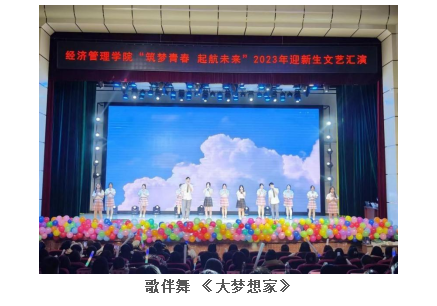 11月10日,学院在鲲鹏学生文化活动中心举办“筑梦青春·起航未来”2023年迎新生文艺汇演。学院党委书记李德欣,党委副书记高洋,副院长刘帅、赵贵玉,学生工作办公室全体老师,各系各专业教师代表,学校校友总会副秘书长、吉林省卓越科技有限公司董事长董雪峰,新东方大学生学习与发展中心校长吴博、市场营销部经理张珉浩,吉仕教育校长陈岑参加本次活动。