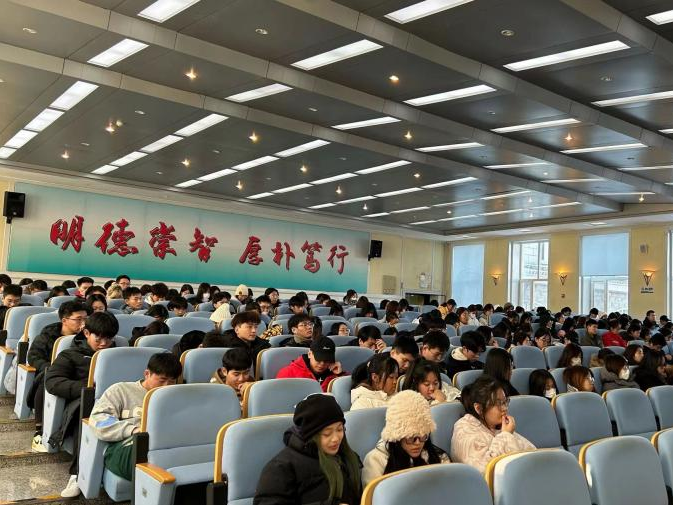 会上,胡爽从大学规划、安全底线、诚信考试三个方面展开教育。