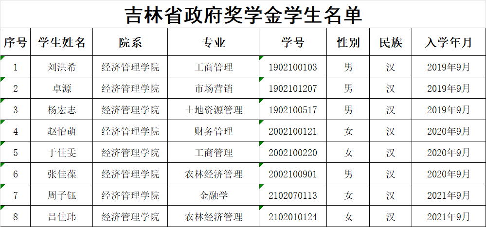 获吉林省政府奖学金学...